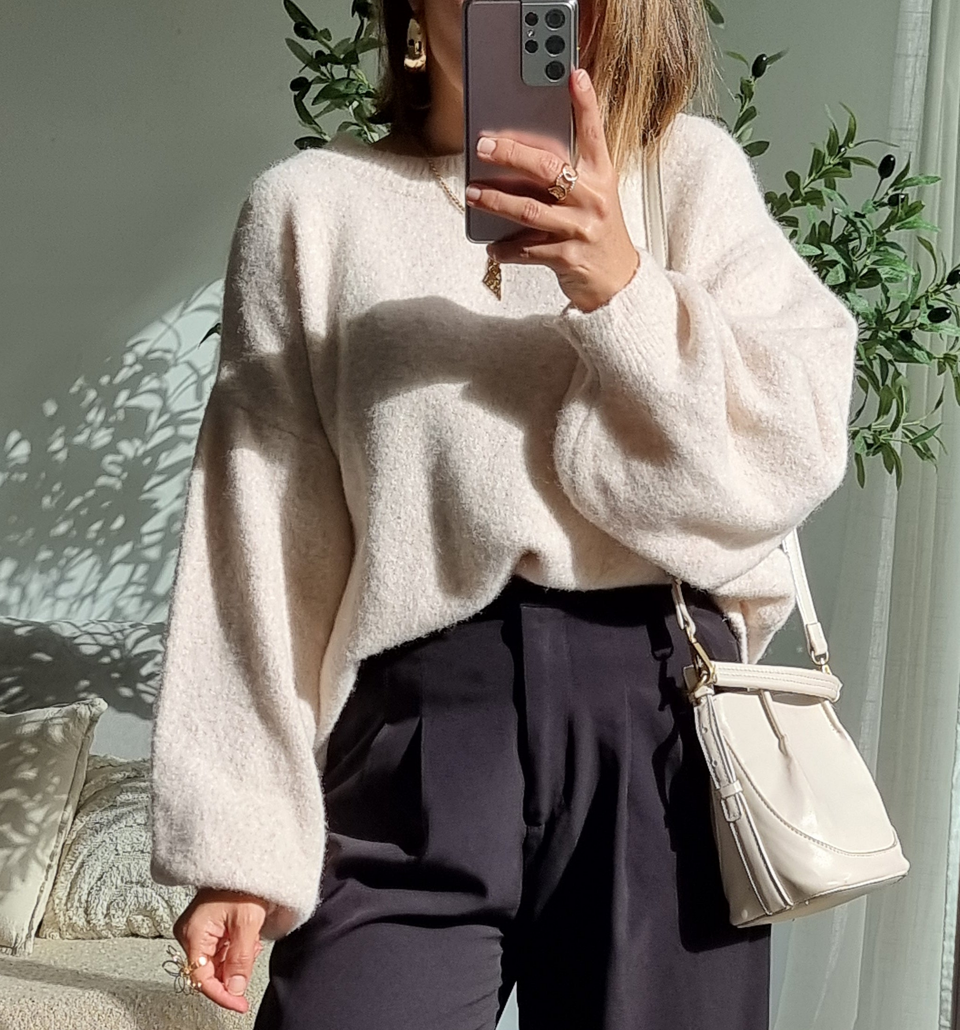PULL LAINE COL ROND ECRU