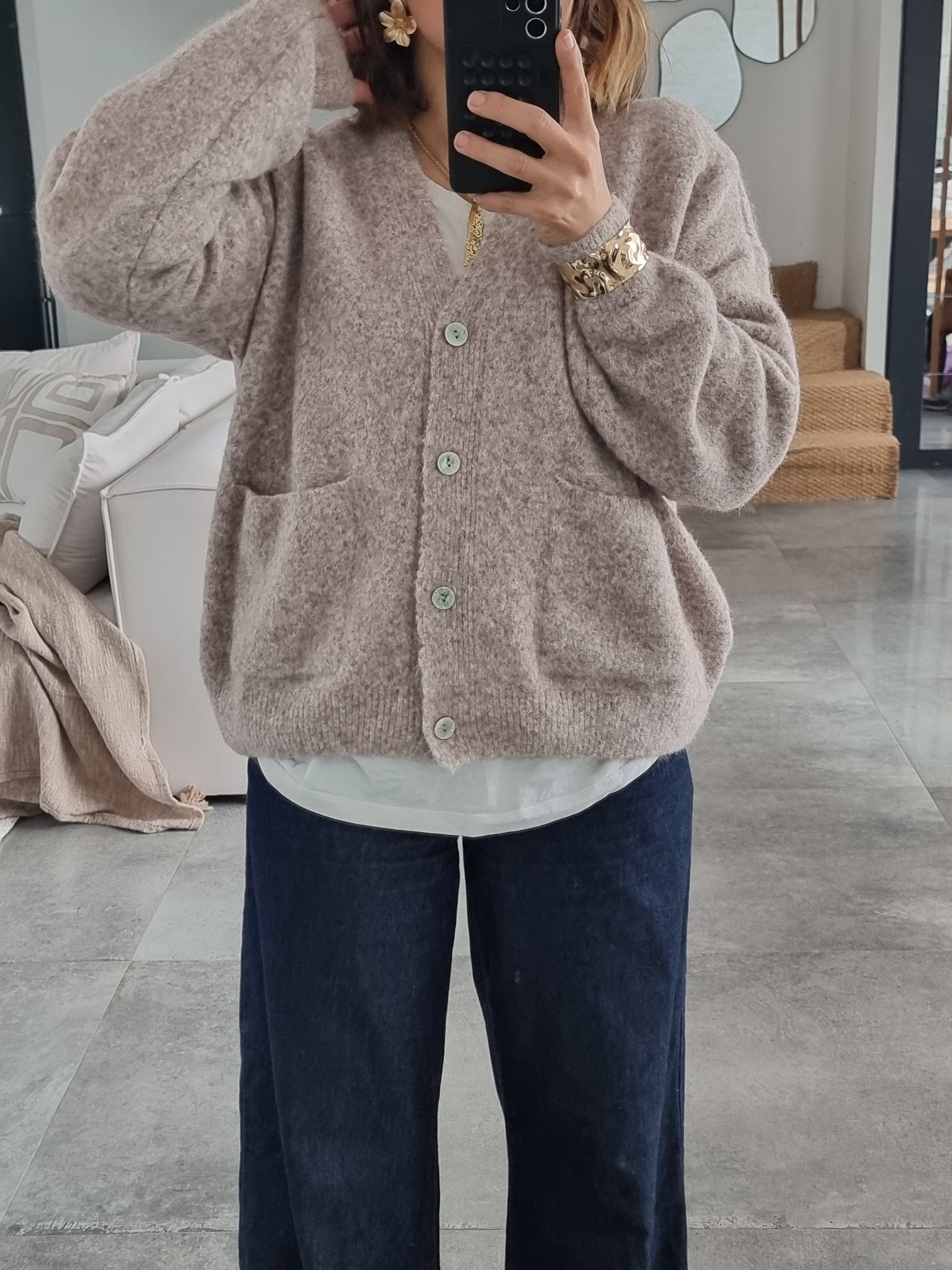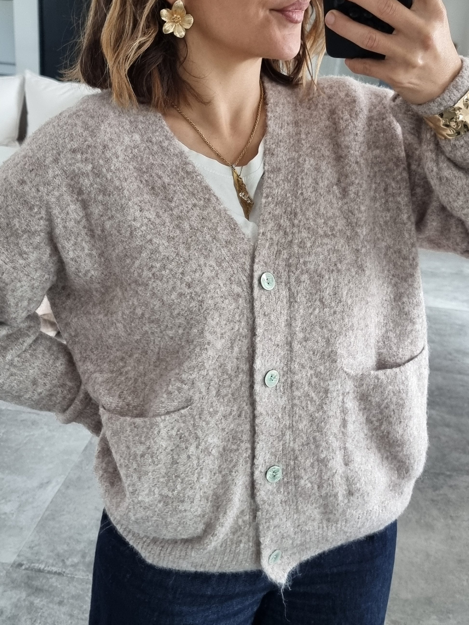 GILET COL V BEIGE