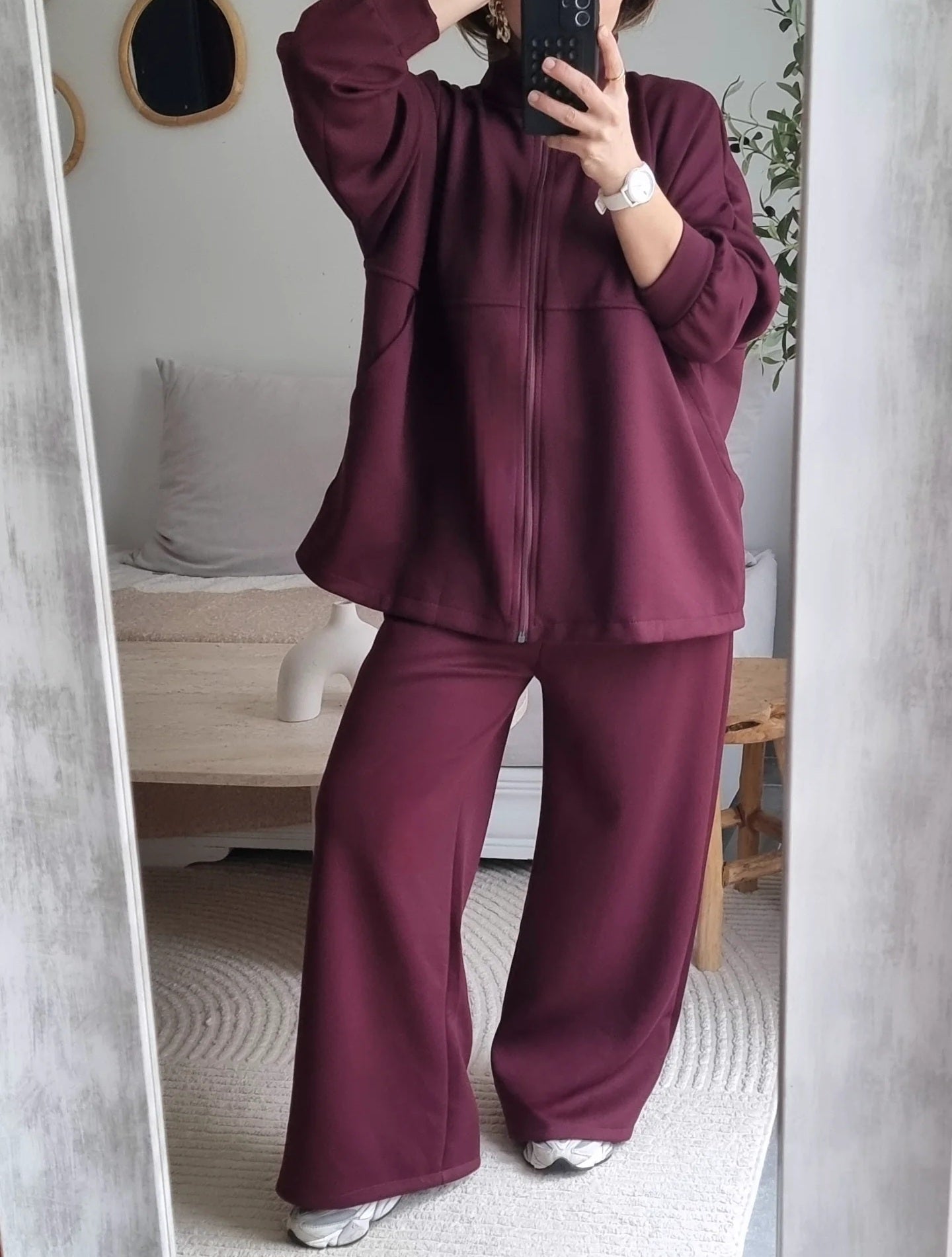 SURVÊTEMENT MOLLETONNÉ À ZIP BORDEAUX
